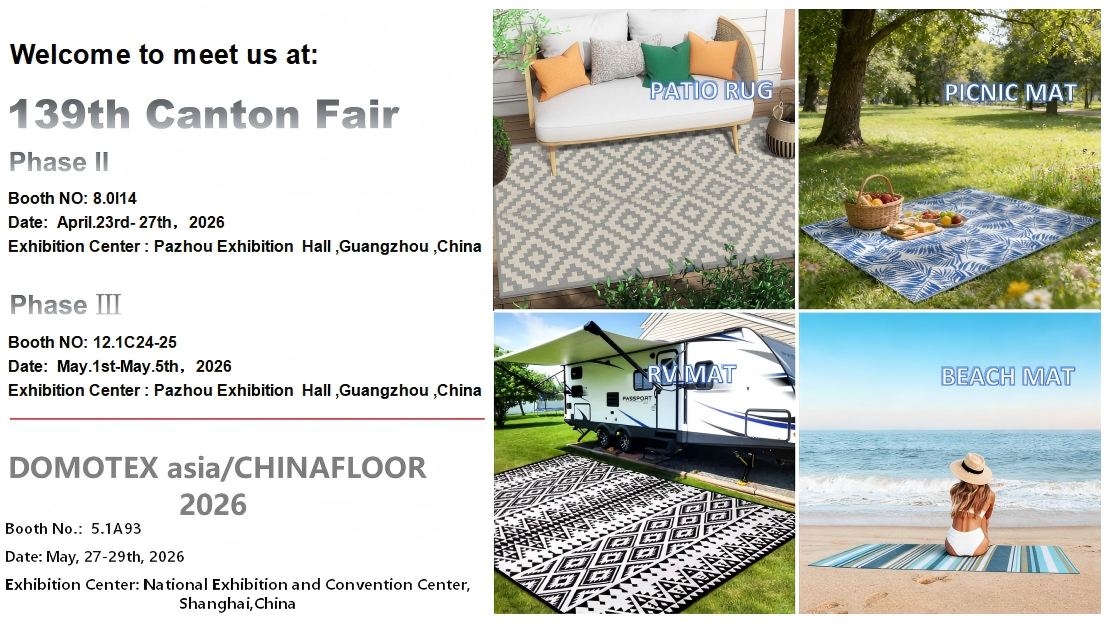 The company's OEM PP woven mats are widely used as outdoor rugs, patio mats, RV mats, camping mats, beach mats, and promotional flooring. Thanks to their waterproof, UV-resistant, and mold-resistant properties, these mats are ideal for both indoor and outdoor environments.